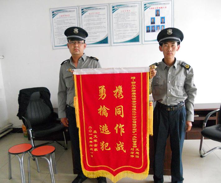 2013年6月1日上午10點(diǎn)左右被撞小孩父親吳文軍代表全家來(lái)到鄂爾多斯泰達(dá)保安公司康巴什分公司萬(wàn)利礦一大隊(duì)對(duì)督查部王建國(guó)與劉宏偉同志表示感謝并贈(zèng)送錦旗一面,現(xiàn)金2000元。但是兩位同志堅(jiān)決的拒絕了現(xiàn)金,接受了“協(xié)同作戰(zhàn)、勇擒逃犯”的錦旗。
