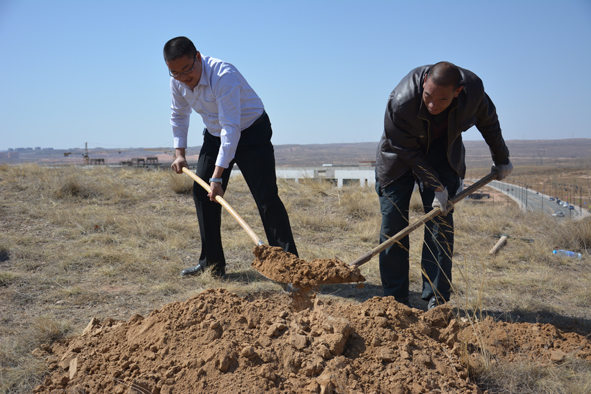 上午9時許,我們的隊伍準時到達植樹地點。此時的康巴什新區(qū)義務植樹造林基地彩旗招展、人聲鼎沸,全市黨政機關、企事業(yè)單位、學校及社會志愿者等千余人共同參與了植樹活動。植樹現(xiàn)場全體員工頂著大風,迎著黃沙,揮鎬揚鍬,挖坑鏟土,揮汗如雨,處處呈現(xiàn)一派忙忙碌碌、熱火朝天的景象,充分展現(xiàn)了我們隊伍頑強的戰(zhàn)斗意志和良好的精神風貌。經(jīng)過近一天的努力,我們的員工保質保量的完成了植樹任務。我們的員工們飽滿的工作熱情和高質量的勞動成果,贏得了駐地青春山街道辦事處領導的高度贊揚。