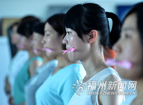 女保鏢們要進(jìn)行禮儀訓(xùn)練,抿小紙條練習(xí)儀容。