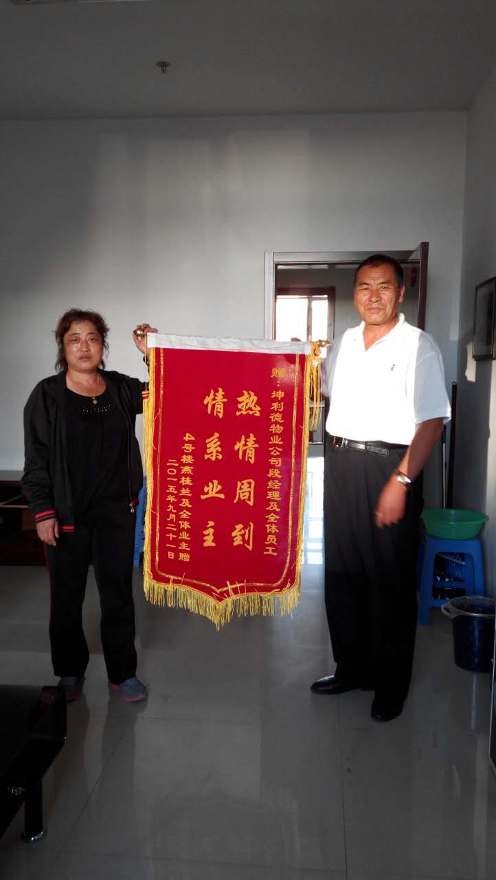 我公司于九月十二日啟動(dòng)了本小區(qū)物業(yè)服務(wù)全面工作,在短短的十天時(shí)間里,清掃外圍環(huán)境衛(wèi)生,清運(yùn)長(zhǎng)期積存垃圾,疏通陳堵已久的5#樓地下室污水管道,搶修泵房外地下自來(lái)水管道破裂,得到小區(qū)全體業(yè)主的好評(píng)與認(rèn)可,贏得4#樓全體業(yè)主饋贈(zèng)錦旗一面。我公司深感服務(wù)于小區(qū)全體業(yè)主的榮幸,也深感全體業(yè)主對(duì)我公司的有力支持,更深感是業(yè)主對(duì)全體員工勞動(dòng)成果的肯定,我公司將秉承“業(yè)主至上,服務(wù)第一”的理念,兢兢業(yè)業(yè)做管理,踏踏實(shí)實(shí)做服務(wù),點(diǎn)點(diǎn)滴滴做到位,以業(yè)主滿(mǎn)意為責(zé)任,一如既往、持之以恒服務(wù)好小區(qū)全體業(yè)主。