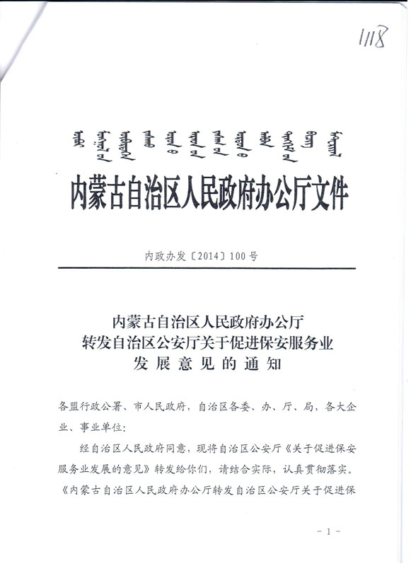 內(nèi)蒙古自治區(qū)人民政府辦公廳轉(zhuǎn)發(fā)自治區(qū)公安廳關(guān)于促進(jìn)保安服務(wù)業(yè)發(fā)展意見的通知 |