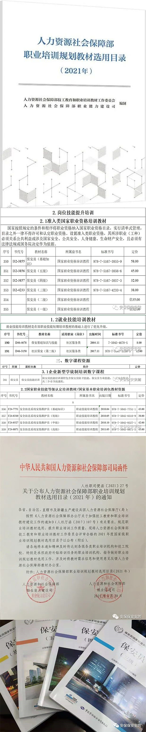 人力資源和社會保障部安保職業(yè)培訓(xùn)規(guī)劃教材選用目錄(2021年) |