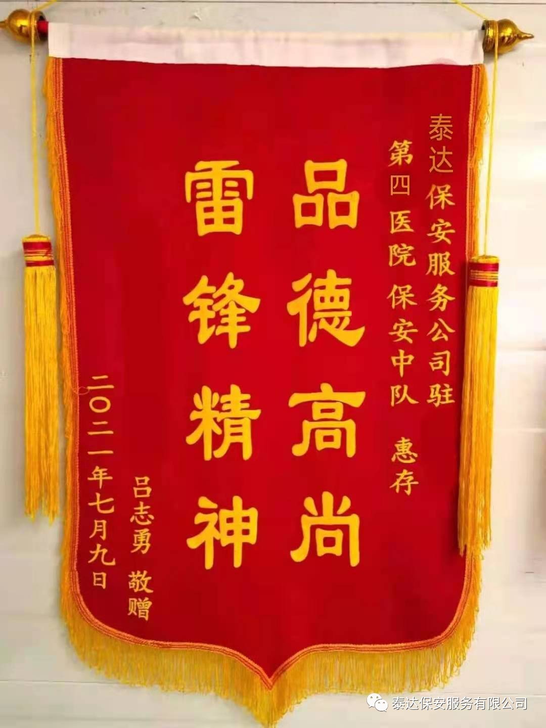 通過監(jiān)控錄像,確定失主是住院部某位患者家屬,在與失主呂志勇先生取得聯(lián)系后,呂志勇很快就來到了保衛(wèi)部,經(jīng)過認(rèn)真核對(duì)證件信息,該錢包是呂志勇在醫(yī)院陪同家屬住院時(shí)不慎遺失。尋回錢包的那一刻,呂志勇十分感動(dòng),贊揚(yáng)保安員王文煥拾金不昧,贊揚(yáng)泰達(dá)保安公司的精神文明素質(zhì)。并想用現(xiàn)金答謝,王文煥婉言謝絕后,呂志勇決定用最傳統(tǒng)的方式——錦旗,來表達(dá)感激之情。