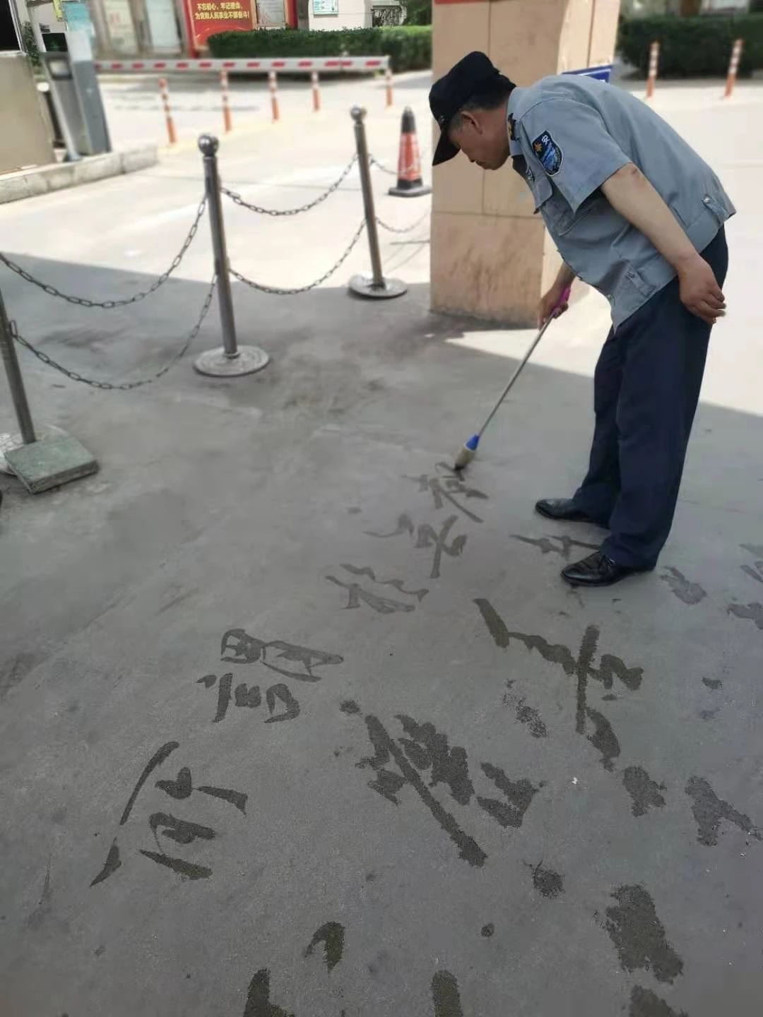 在小區(qū)空地上寫毛筆字