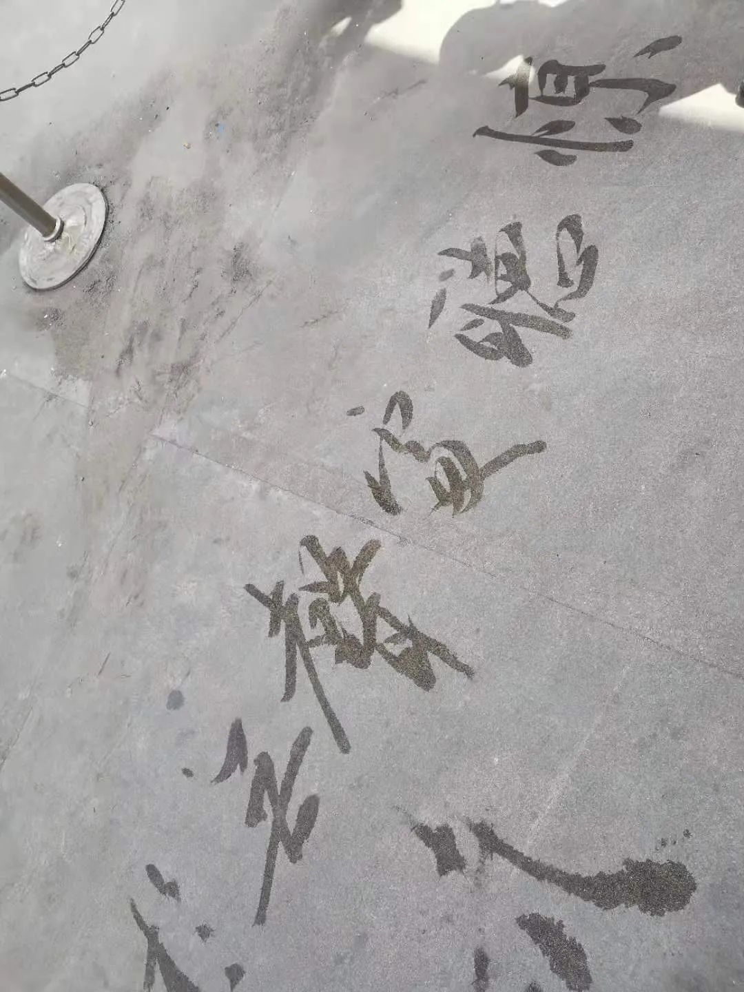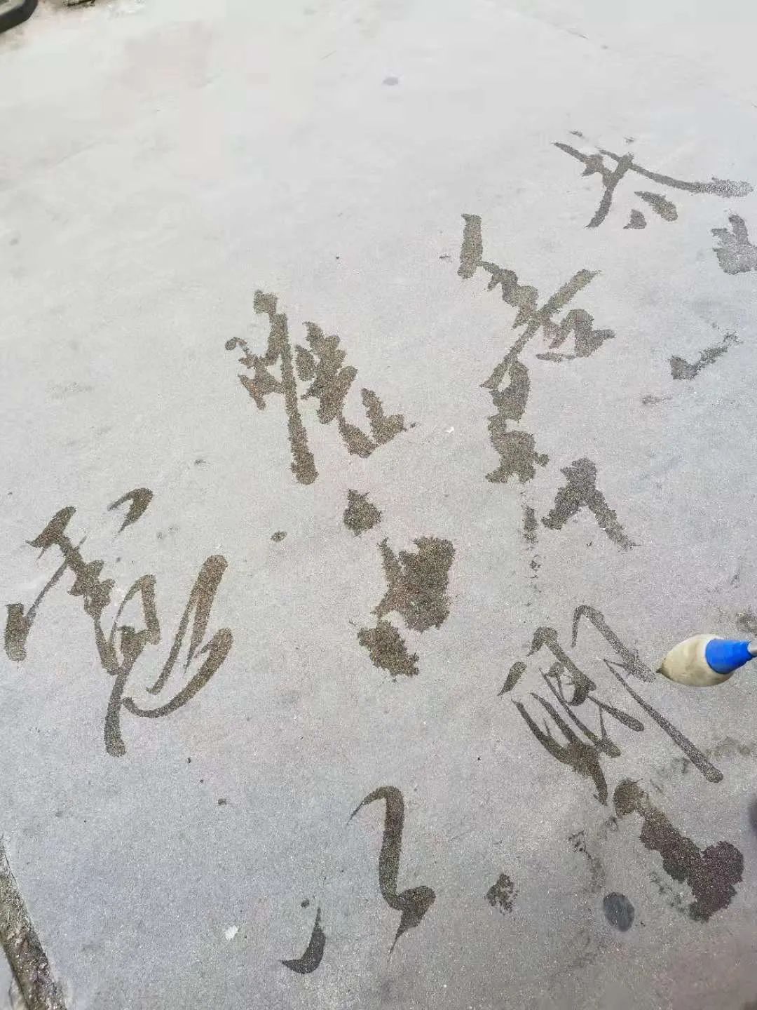 “想臨摹名家的字很困難,有的字要寫一百多遍,多天的琢磨、反復(fù)練習(xí)后,終于有一個字寫好了,心里就很高興。”江明說。為了書寫方便,最近一段時間,他自制了一個長70厘米的“大毛筆”,在地上以水為墨,練習(xí)寫毛筆字。因?yàn)橄矏蹖懨P字,春節(jié)時鄰居們也常常請他寫春聯(lián)。